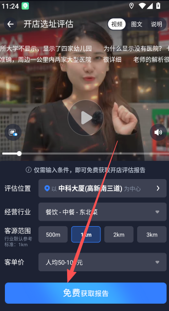 5、输入选址所需要的评估报告,点击免费获取报告。
