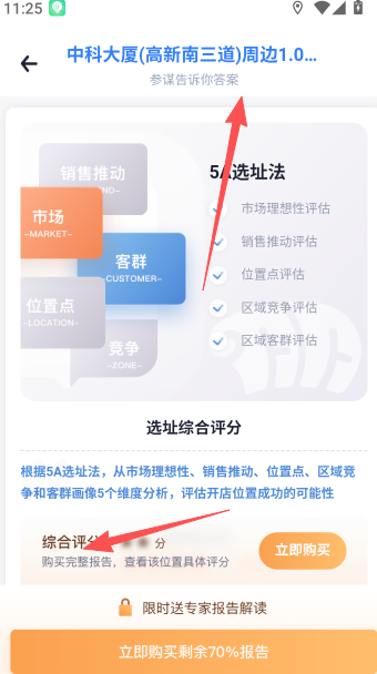 6、根据综合评估得分来确定是否要开店,如果需要的话建议购买剩余的70%报告。