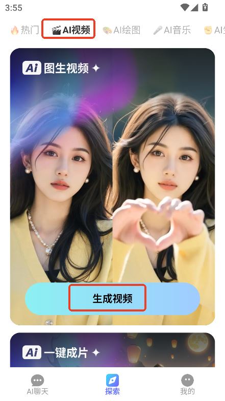 1、启动Deep人工智能AI应用,在首页或功能菜单中找到“一键成片”按钮并点击
