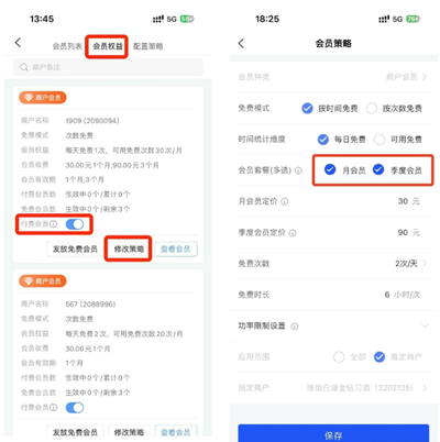 可以设置每天免费充电次数,每次免费时长,权益当天有效(比如:每天免费充1次,每次免费充6个小时)