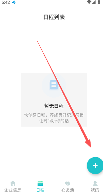 1、进入日程列表功能选项,点击右下方的+号。