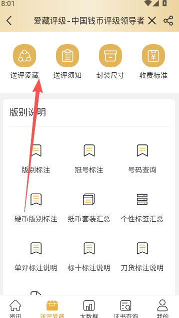 2、在此熟悉送评规则,选择你要送评的藏品。