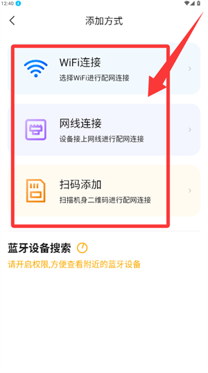 2、选择WiFi、网线或扫码方式,开始配置设备网络。