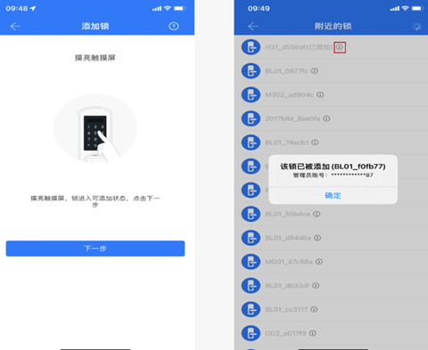 锁被激活后,才处于可添加状态(大部分锁的激活方式是摸亮键盘,还有按键、刷卡、指纹等,具体方式与锁的特征值有关)。