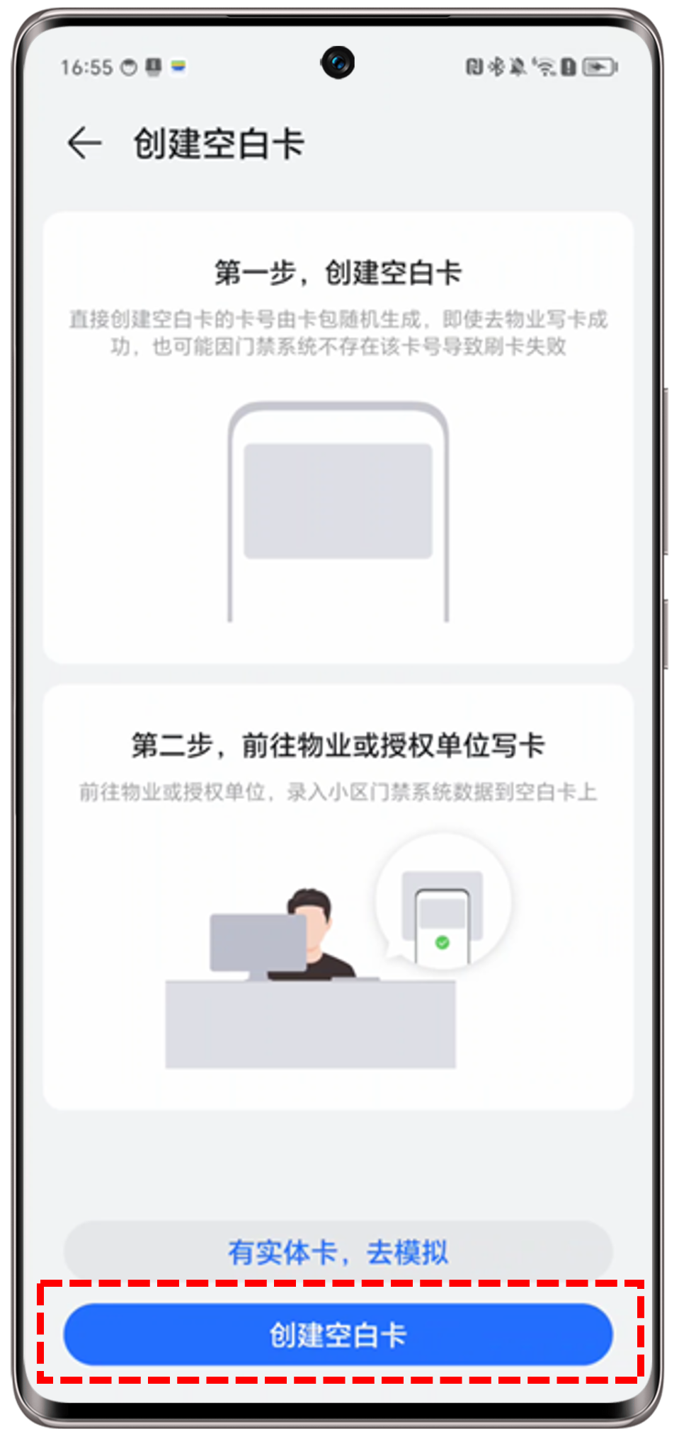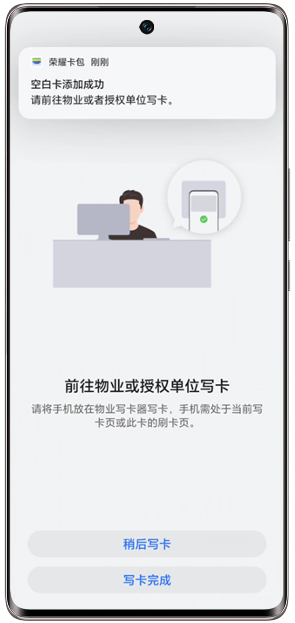 空白卡写卡需在物业或授权单位同意的前提下进行,荣耀钱包仅提供空白卡功能的使用,用户需自行同物业或授权单位友好协商,在合法的情况下完成授权写卡和使用。