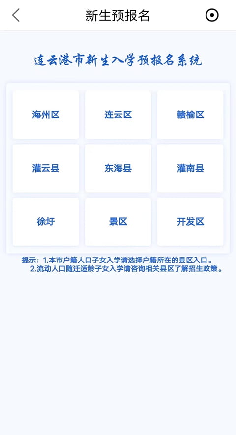 3、选择报名所在地区,随后就可以进行信息填报,所填报的学生、父母(或法定监护人) 户籍、房产等信息均可在户口簿、房产证或不动产权证查看。注意同一学段只能报名一所学校。公办、民办学校不得兼报。为避免网络拥堵,请错峰填报。