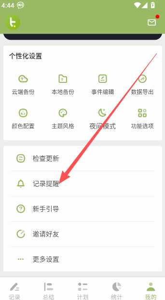 1、点击用人个人页面,下滑找到记录提醒功能选项。
