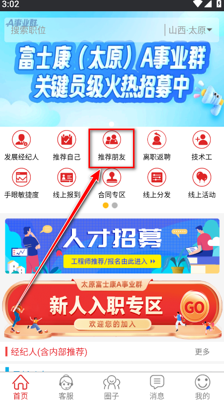 5.返回到首页,点击推荐朋友。由于小编没有富士康工号没办法登录演示截图,大家后面就按照软件的提示操作就好了。