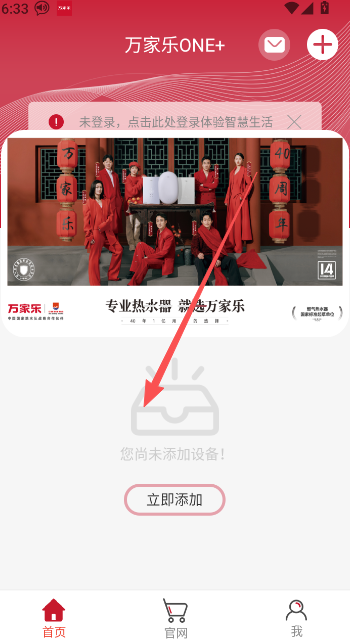 1、点击开启万家乐ONE+智慧体验。