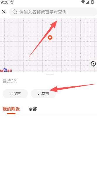 2、输入名称或是首字母查看切换城市,点击城市名称进行切换。