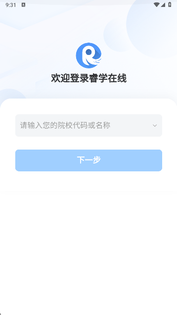 1、首先选择院校,输入院校名称,选择自己所属的院校,点击下一步进入账号密码输入页面。