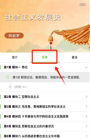 5、选择一门课程,根据目录从第一章开始点击视频课程学习即可。