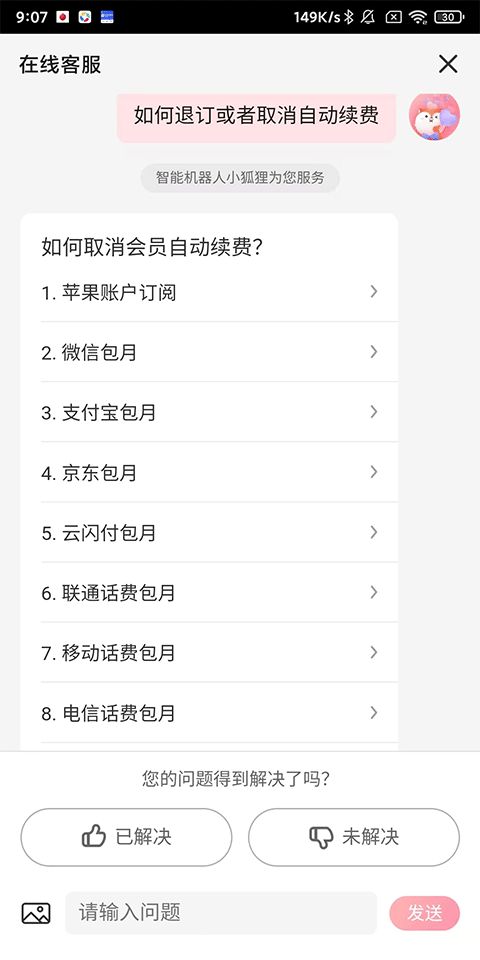 3、在下方输入问题【如何退订或者取消自动续费】;
