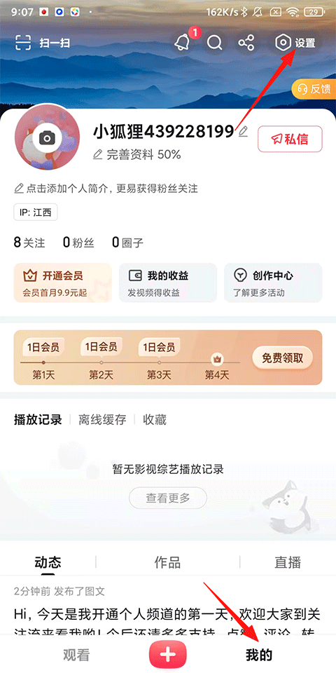 1、打开搜狐视频APP,点击【我的】-右上角的【设置】按钮;