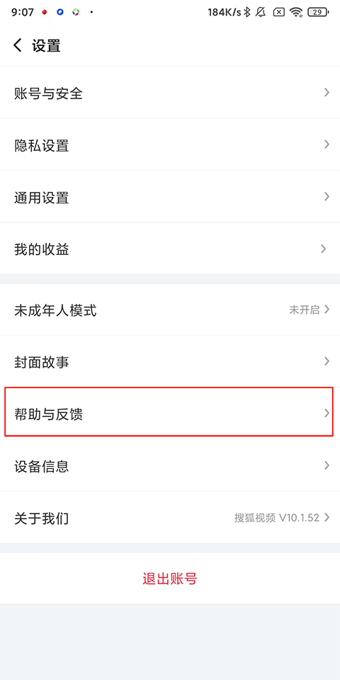 2、找到并打开【帮助与反馈】;