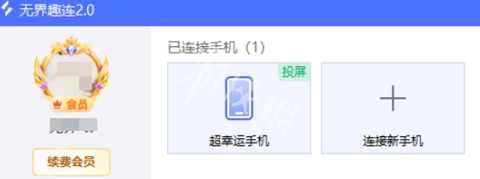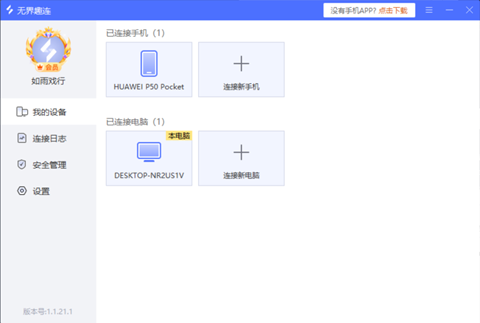 2、点开雷电符号后,自动可以下载无界趣连软件这个是已经下载完,与手机连接成功的效果。