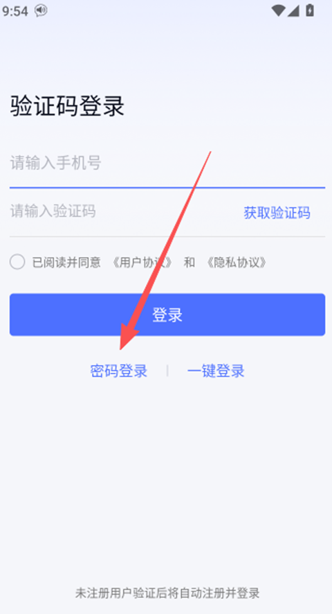 1、1、打开无界趣连app时,首先要登录,登录分验证码登录跟密码登录,选择下面的密码登录。