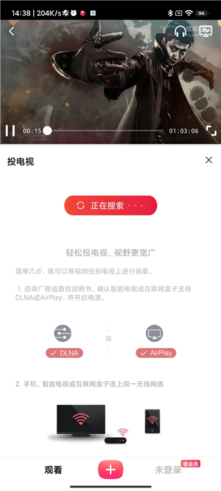4、然后搜索电视设备,搜到后,点击连接投屏即可。
