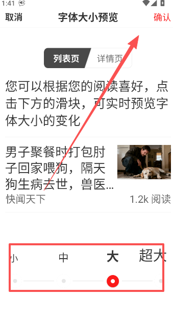 3、根据字体在列表页和详情页面的显示进行修改,点击确定保存设置。