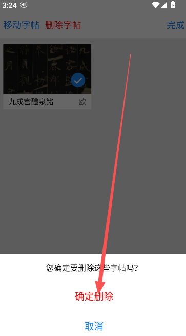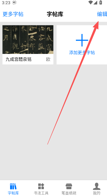 1、书法碑帖大全删除已添加的字帖,可点击字帖库上方编辑功能选项。