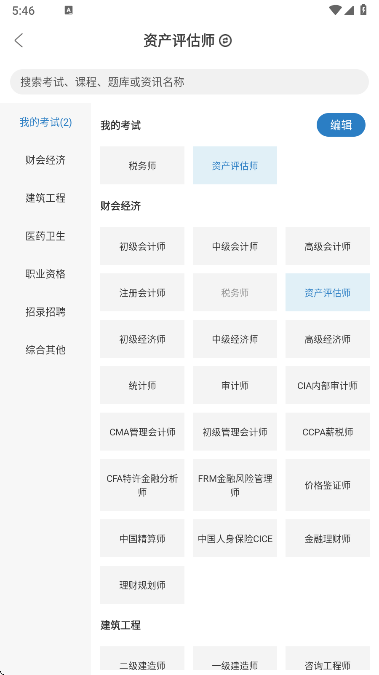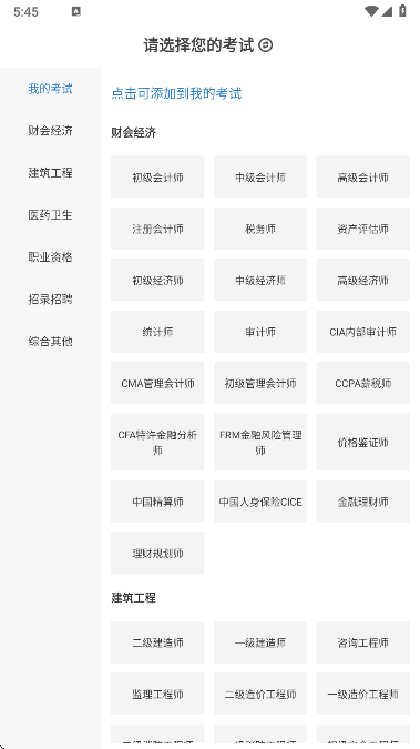 3、点击考试,可以快速切换对应的考试类别