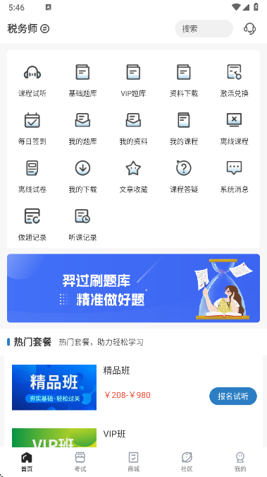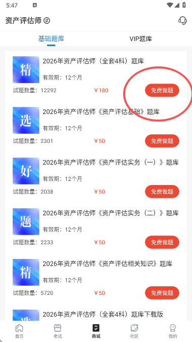 4、在商城页您是能够浏览到众多的课程题库练习的