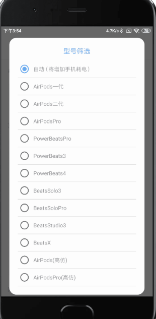 如果不确定当前的耳机型号的,可以选择自动类型,系统会自动匹配耳机型号,但是会比较耗电。
