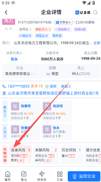 1、企业信息查询:全面展示企业注册信息、股东结构、经营范围等工商资料