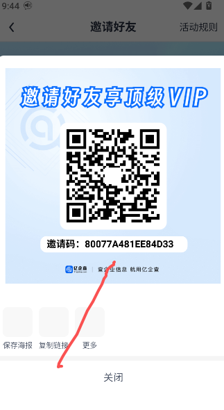 3、以下就是你的专属邀请码,可通过二维码图片的方式领取,或是地址链接。