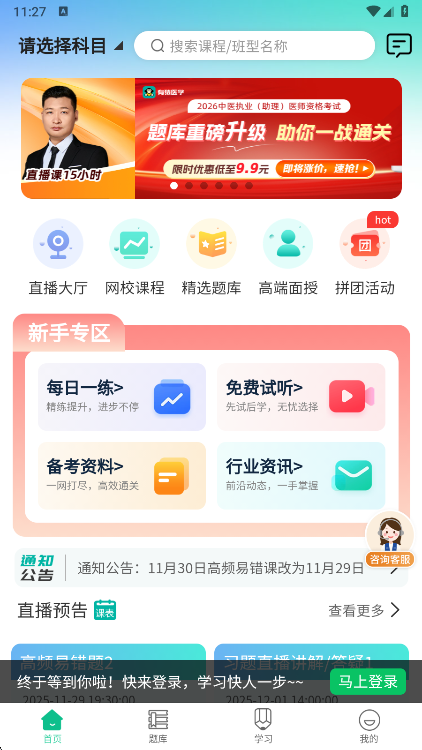 2、课程齐全:2025年及2026年早鸟班执业医/护/药师、正副高卫生职称、主治医师等课程全新上线。