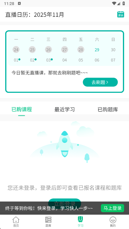 4、在学习版块,您可以浏览到已购的课程,以及最近的学习情况