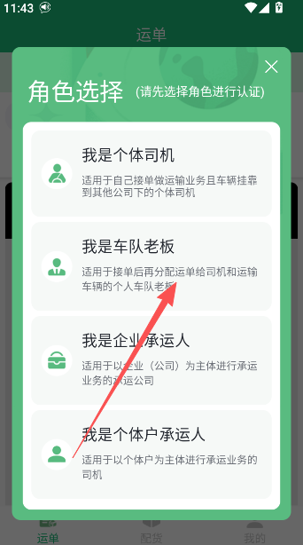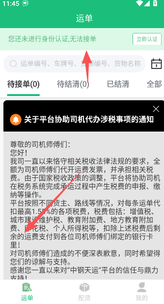 1、中钢天运接单最好选择我是个体司机,进行认证操作。