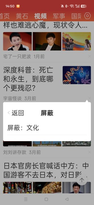 4、如果是整个推送不喜欢,建议屏蔽关键词,不让后续推送此类资讯阅读了。