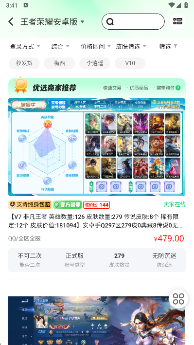 3、找到你想要购买的游戏账号类别进入,就可以浏览详细游戏情况了