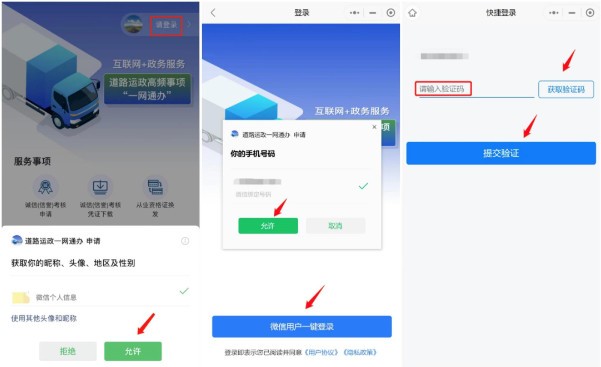 申请人登录互联网道路运输便民服务平台、“道路运政一网通办”小程序或“道运通”APP进行网上申请。