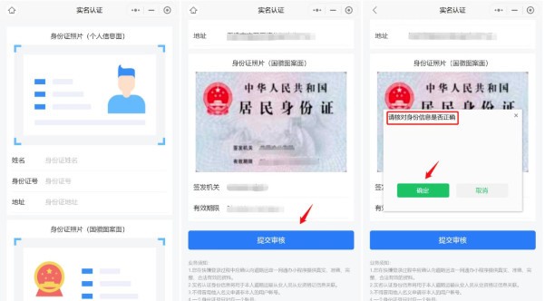 通过短信验证码提交验证后,上传身份证照片进行实名认证。请确保上传的身份证照片清晰有效。
