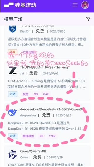 3、这样在模型广场里就能找到很多免费的api,选择一个你喜欢的api打开。