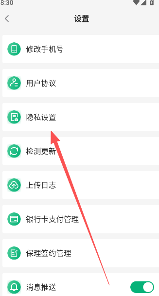 3、注册完成以后,接着来设置中,点击隐私设置。