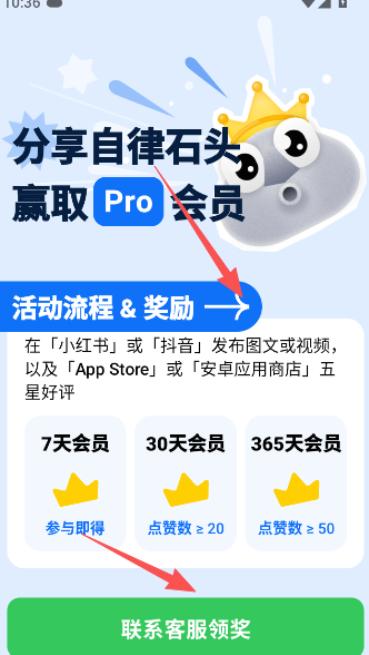 2、选择分享自律石头领取免费的会员。