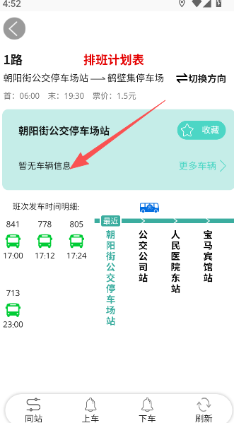3、在此会给出详细的公交实时到站信息和每天的班次发车时间等。