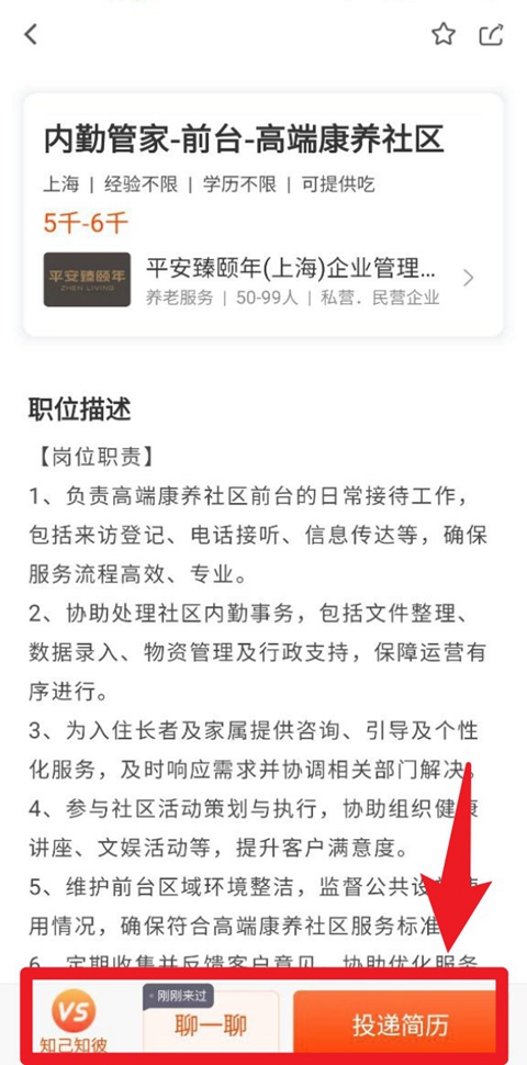 4、 进入职位详情页后,可查看具体岗位描述与待遇信息,点击底部投递简历按钮即可申请。