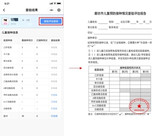 2、身份信息核验成功后,即可查看儿童的疫苗接种完成情况。点击“查验评估报告”,进入“廊坊市儿童预防接种情况查验评估报告”,该报告下载打印后与接种单位开具的纸质版评估报告有同等效力。长按报告保存至相册,之后即可打印该报告,连同儿童预防接种证一起提交学校、幼儿园等进行查验。