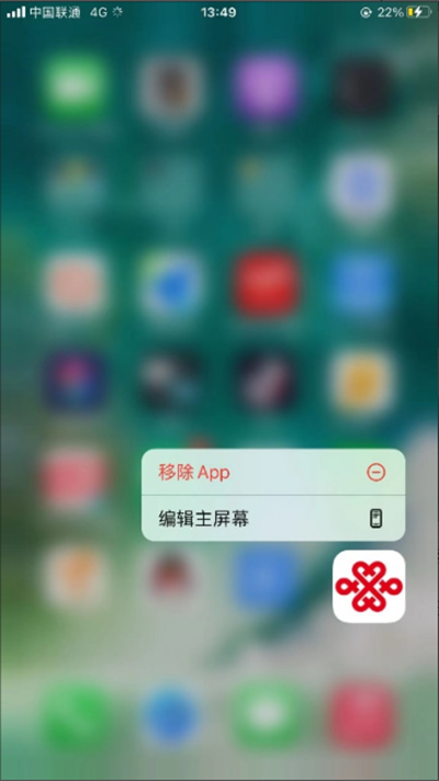 1、 在安装有不动产运营系统APP的苹果手机上常按“不动产运营系统APP”图片,出现可删除的状态。