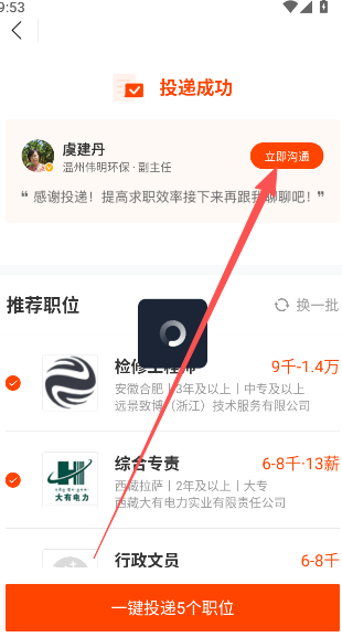 7、投递成功以后,便可以与对方开始沟通。