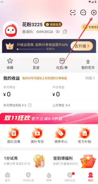 2、在个人中心界面,再点击右上角的设置按钮,跳转到设置列表;