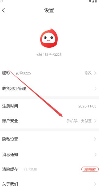 3、在设置列表里面,找到账户安全,点击进入账号管理板块;