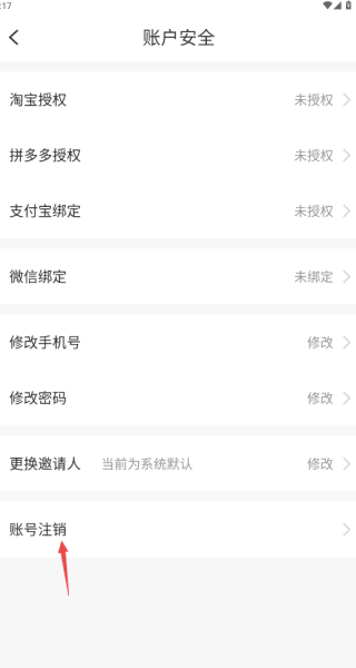 4、在账号管理板块中,往下拉在,找到最下角的注销账号就行!