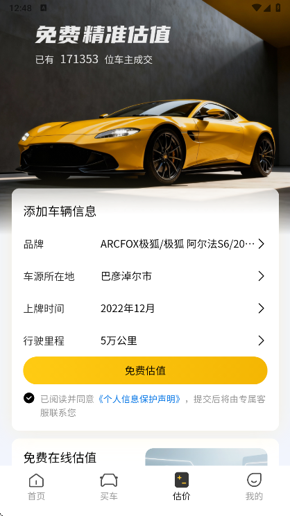 1、打开后来到首页,可以看到基础的汽车交易服务