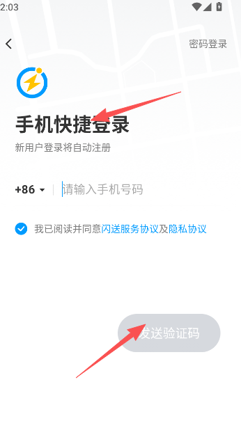 1、手机号码验证码快捷登录进入。