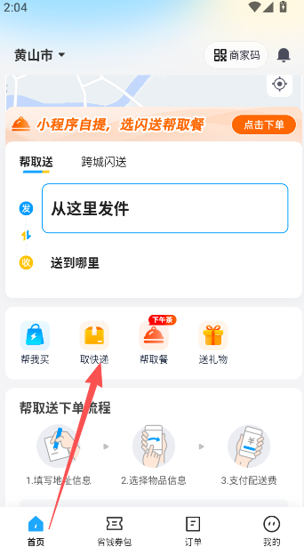 2、在首页这里点击取快递功能选项。